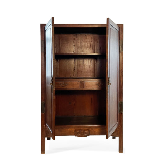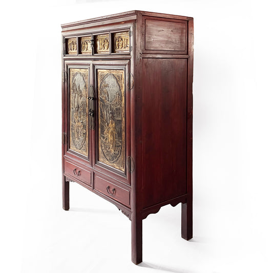 Großer Schrank in rotem Lack mit vergoldeten Verzierungen