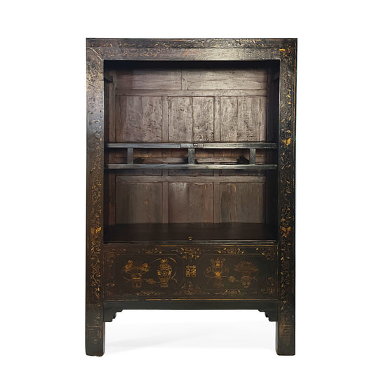 Schwarz lackierter Schrank mit vergoldeter Verzierung
