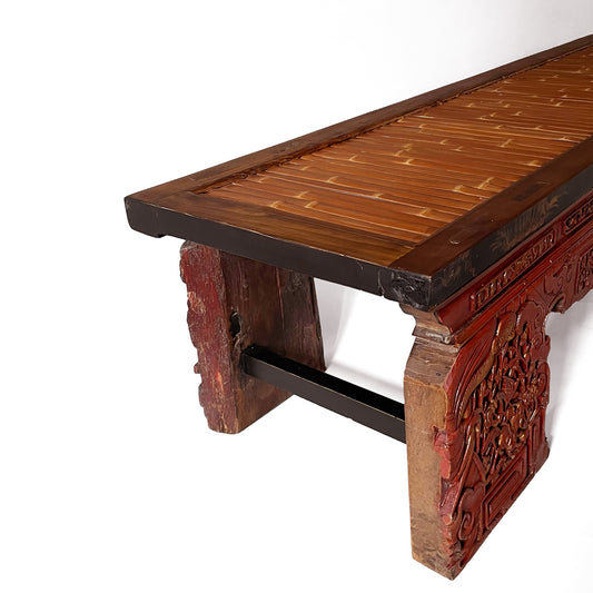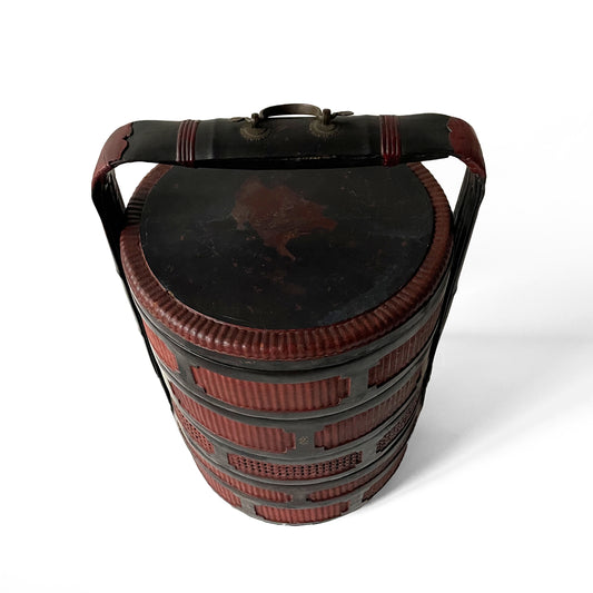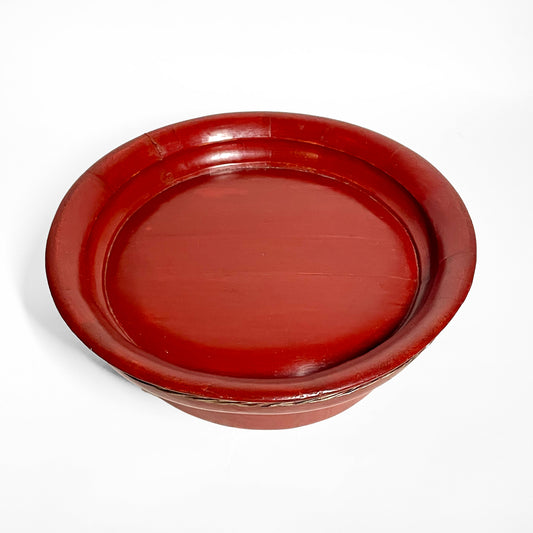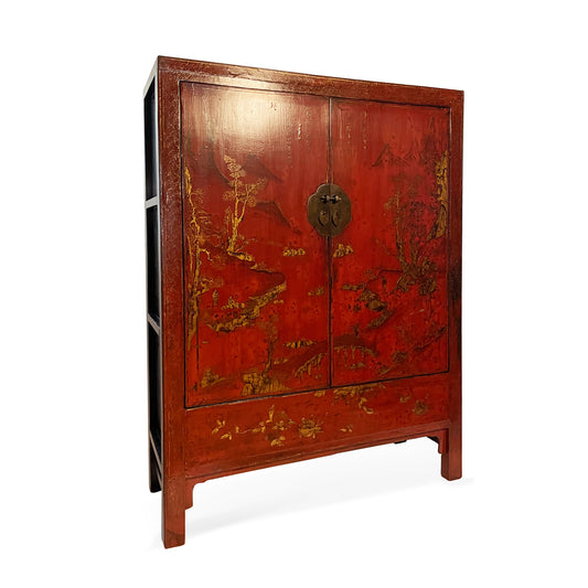 Großer Schrank in rotem Lack mit vergoldeten Verzierungen