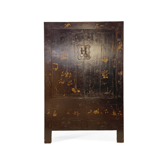 Schwarz lackierter Schrank mit vergoldeter Verzierung